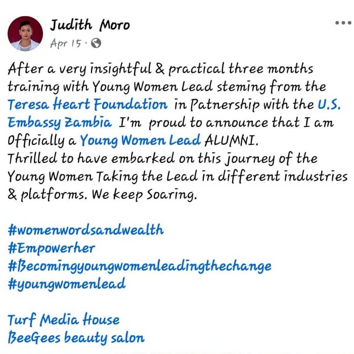 My name is Judith Moro, a Zambian-Italian mixed race. I grew up in Lusaka's Sunningdale area. I currently reside in Lusaka and was part of Zambia’s hit TV series “Mpali” on Zambezi magic where I playsed the character Monica. Growing up I had a passion for media and entertainment, so much so that I got my bachelor’s degree in Mass Communication and Journalism.